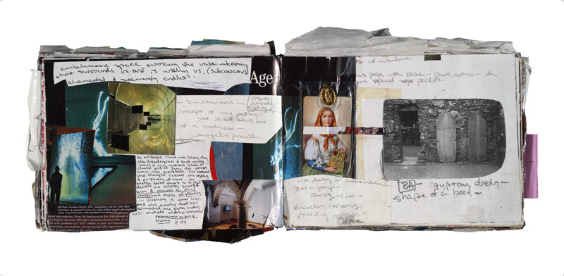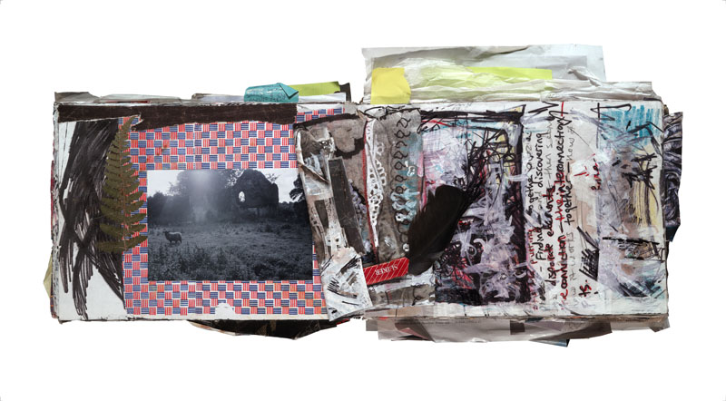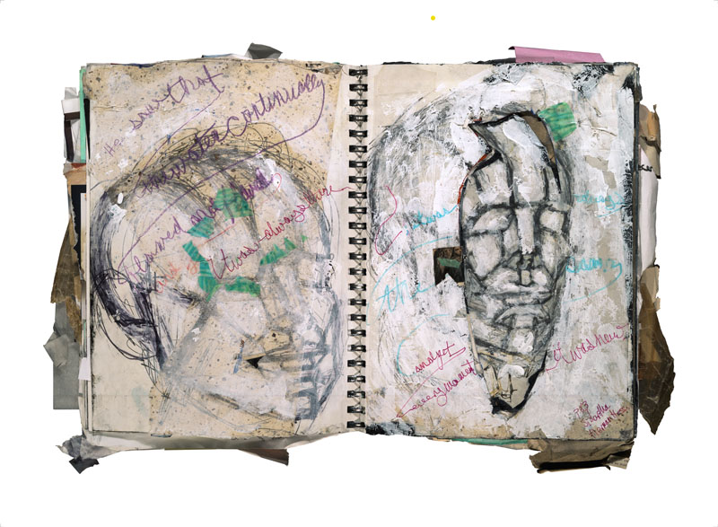 Sketchbooks are an integral part of Hester’s life, a portable home for memories, thoughts, and dreams. Insights and experiences gathered along her journeys through different spaces – whether they are the arts and cultures of other countries, the movements of everyday life, or the interior dimensions of the soul – are translated into Hester’s vocabulary of colors, text, and objects. These “collected bits of life” are arranged into explorations of material, techniques, and ideas, all of which produce an imagery in her work that is rich with symbolism.