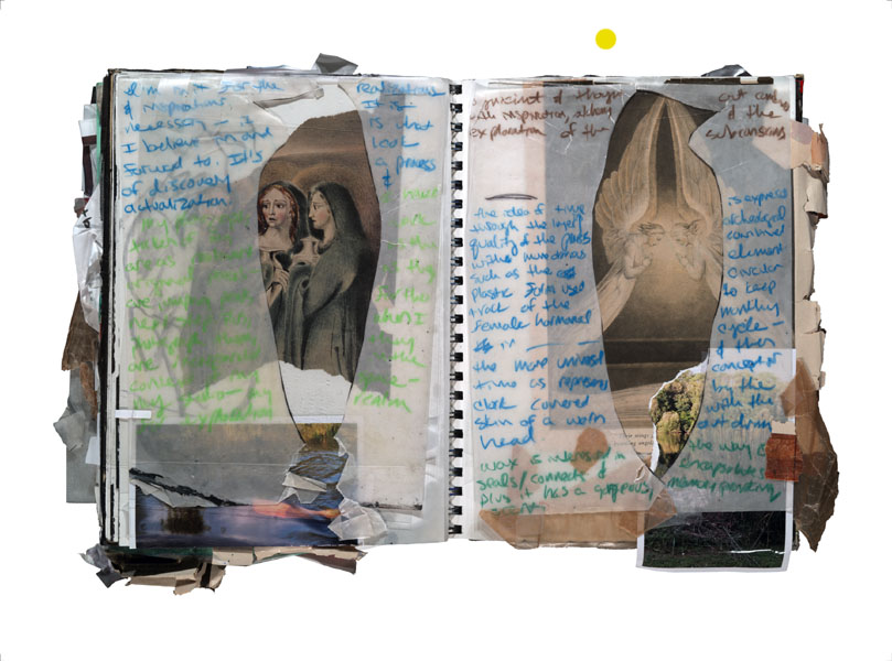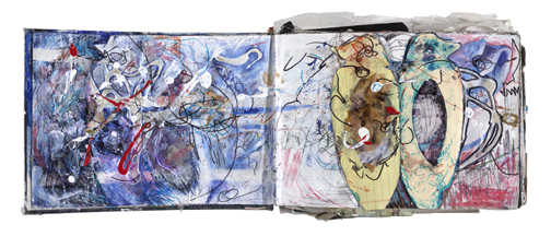Sketchbooks are an integral part of Hester’s life, a portable home for memories, thoughts, and dreams. Insights and experiences gathered along her journeys through different spaces – whether they are the arts and cultures of other countries, the movements of everyday life, or the interior dimensions of the soul – are translated into Hester’s vocabulary of colors, text, and objects. These “collected bits of life” are arranged into explorations of material, techniques, and ideas, all of which produce an imagery in her work that is rich with symbolism.