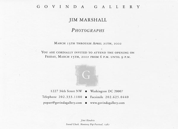 The invitation to Jim Marshall’s exhibition at Govinda in 2002.
