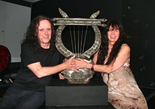 A wonderful component of the SapphoFest exhibition in Athens was the extraordinary sculpture Lover’s Leap by Donovan’s friend Gypsy Dave Mills. Originally commissioned by Donovan, this beautiful bronze sculpture is Gyp Mills’ depiction of Sappho’s harp. Gyp Mills was so moved by the SapphoFest activities and programs, that he gave Lover’s Leap to the Center for Hellenic Studies in Nafplio as a gift in honor of the first SapphoFest. Lover’s Leap was presented by curator Christopher Murray on behalf on Gyp Mills, with Donovan in attendance.