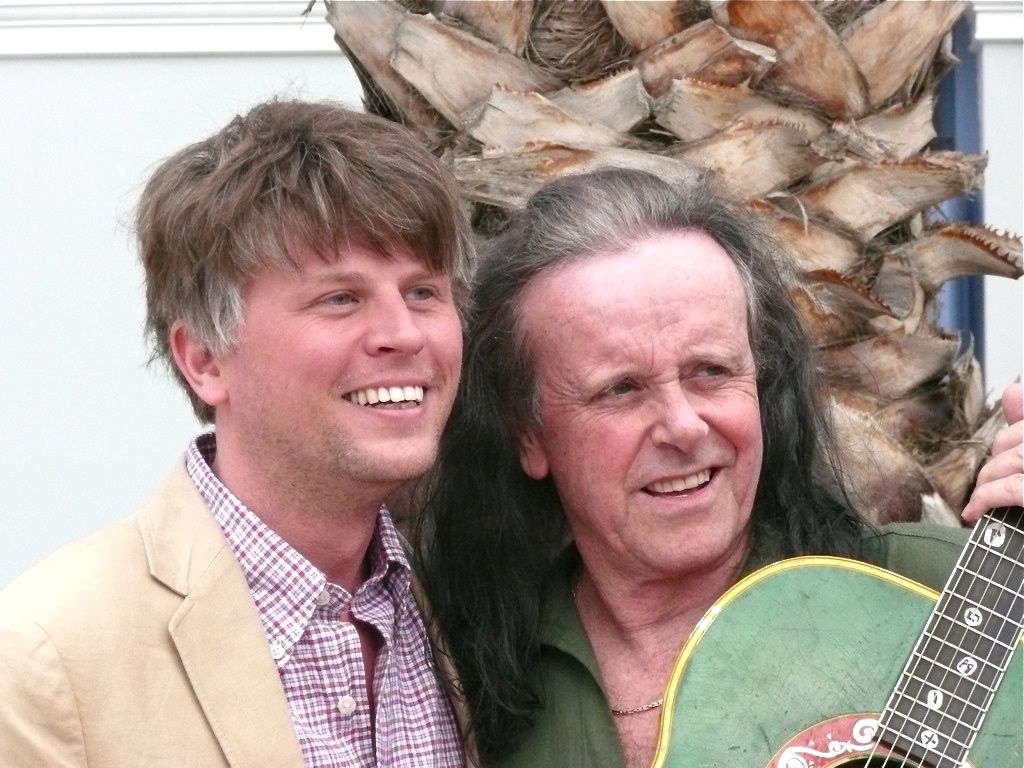 Rutgers professor Timothy Power and Donovan after Donovan’s ‘Master Class.’. Copyright © Mimi Muellner. All Rights Reserved.