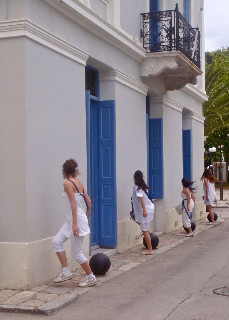 Two original dance/theatrical pieces were created for SapphoFest 2010: the first, Sappho: Fragments, was performed in Athens on the evening of June 1st at the Hellenic American Union Theater. Directed by Kornillia Vasileiadou and Camila Bauer Bronstrup, Sappho: Fragments mesmerized the capacity crowd at the Hellenic American Union. The second performance took place in Nafplio on June 6th and was performed by dance students from the University of the Peloponnese under the direction of Professor Vassiliki Barbousi from the Department of Theater Studies at the University of the Peloponnese and Dance Instructor Anna Daskalou. This performance began inside the Center for Hellenic Studies building in Nafplio, and continued out into the street. Both performances were produced under the auspices of the Center for Hellenic Studies.