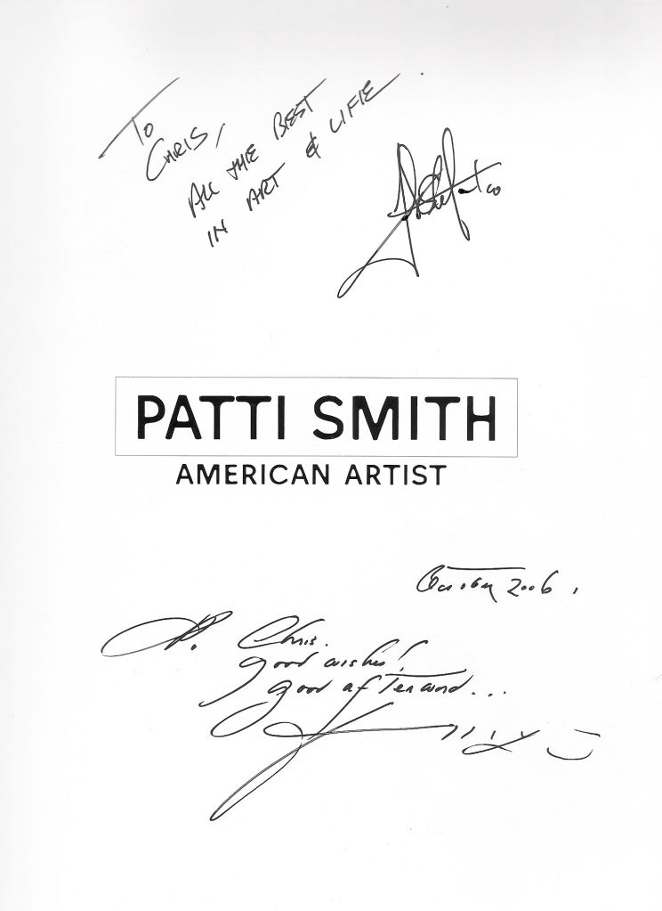 Photographer Frank Stefanko and artist Patti Smith’s personal inscriptions to Govinda Gallery Director Chris Murray.