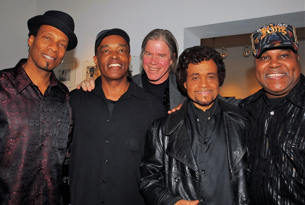 Linwood Taylor, Black Magic (Horace Turner), gallery director Chris Murray, Bobby Parker, and Memphis Gold (Chester Chandler) at Govinda Gallery. Copyright © Fernando Sandoval. All Rights Reserved.