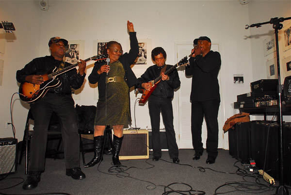 Memphis Gold (Chester Chandler), Selena McDay, Bobby Parker, and Black Magic (Horace Turner) jamming at Govinda Gallery. Copyright © Fernando Sandoval. All Rights Reserved.
