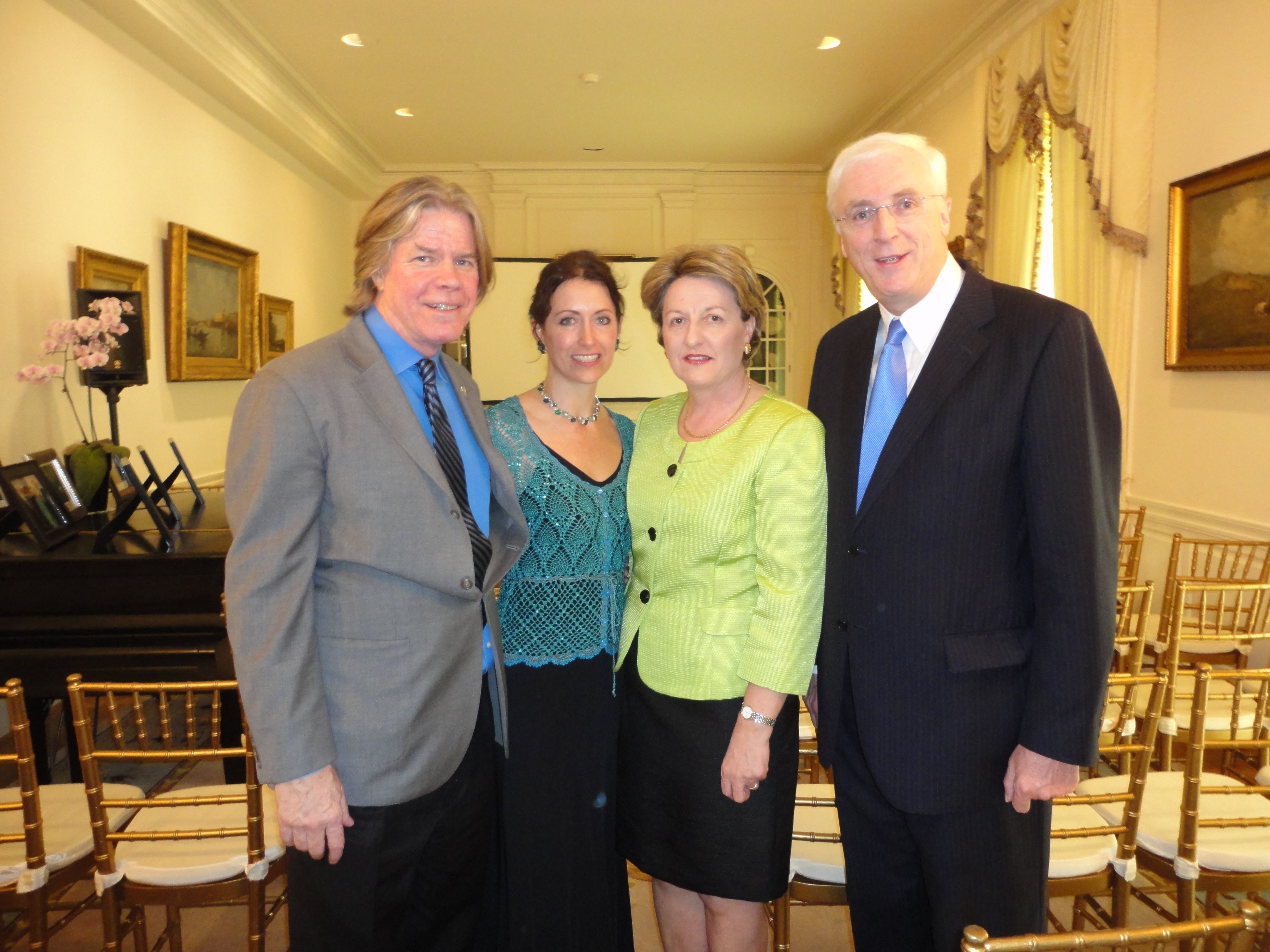Exhibition curator Chris Murray, artist Carlotta Hester, Marie Collins, and Ambassador Michael Collins at the Ambassador’s Washington residence on Monday, April 11th, 2011. Copyright © Vivienne Foster. All Rights Reserved.
