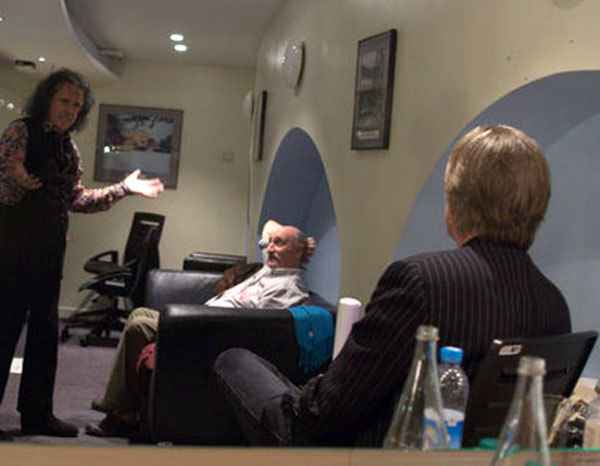 Donovan’s dressing room at the Royal Albert Hall with his friends Chris Murray and Gypsy Dave.