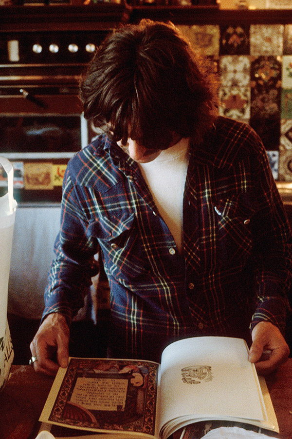 George enjoying Illuminations from the Bhagavad-Gita in his kitchen, 1982. Copyright ©Chris Murray. All Rights Reserved.