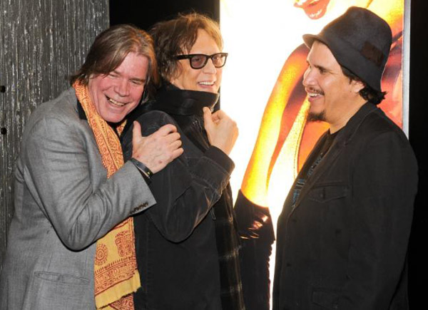 Govinda Gallery Director Chris Murray with photographer Mick Rock and Rob Garza of Thievery Corporation. Copyright ©revamped.com. All Rights Reserved.