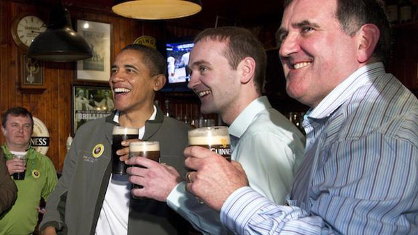 On St. Patrick’s day President Obama visited the Dubliner Irish Pub in Washington, DC and enjoyed a pint of Guinness. Last year the President visited Ireland and his ancestral home of Moneygall and was very warmly received by the Irish people.