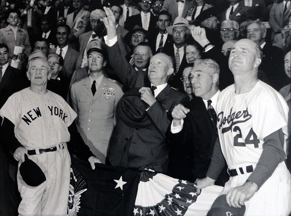President Eisenhower throws out the fist ball for the 1955 World Series. Copyright ©Osvaldo Salas. All Rights Reserved.