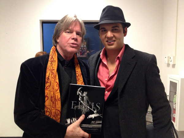 The Washington Post reviewed the show today and described Cody Slaughter’s performance as Elvis as “…a liquid Elvis, hips twisting and lip curling to perfection.” I went to see Cody Slaughter backstage after the show to present him with a copy of Elvis 1956 (Welcome Books), Alfred Wertheimer’s beautiful book published as a catalogue for the Smithsonian’s touring exhibition Elvis at 21, which is in Nashville, Tennessee at the moment. When I gave Elvis 1956 to Cody he was greatly appreciative and told me that he is 21 years old himself, which is the age Elvis was in 1956. Cody is on his way in a few days to meet up with Elvis’ legendary drummer D.J. Fontana to tour together on a ‘Birthday Tribute’ to Elvis.