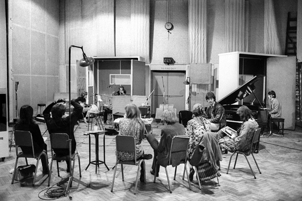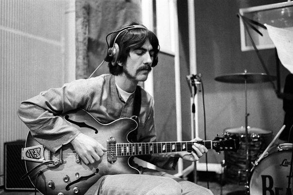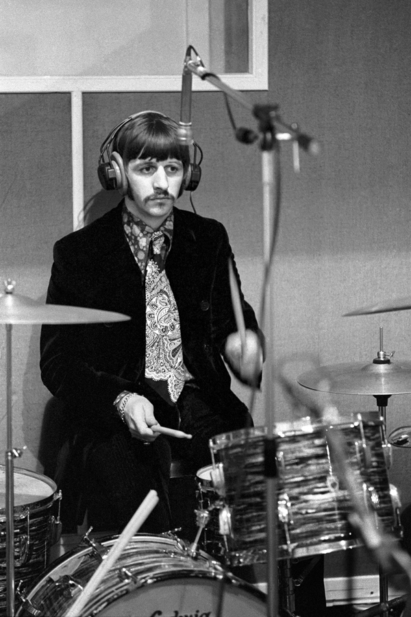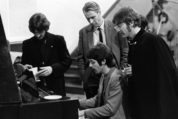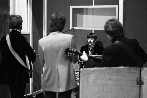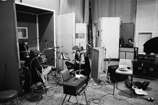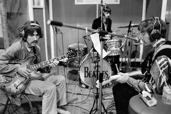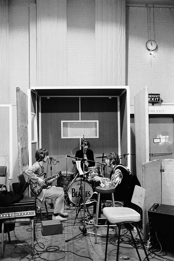 George Harrison, Ringo Starr, John Lennon, Abbey Road Studios February 28, 1967. Copyright © Henry Grossman. All Rights Reserved.