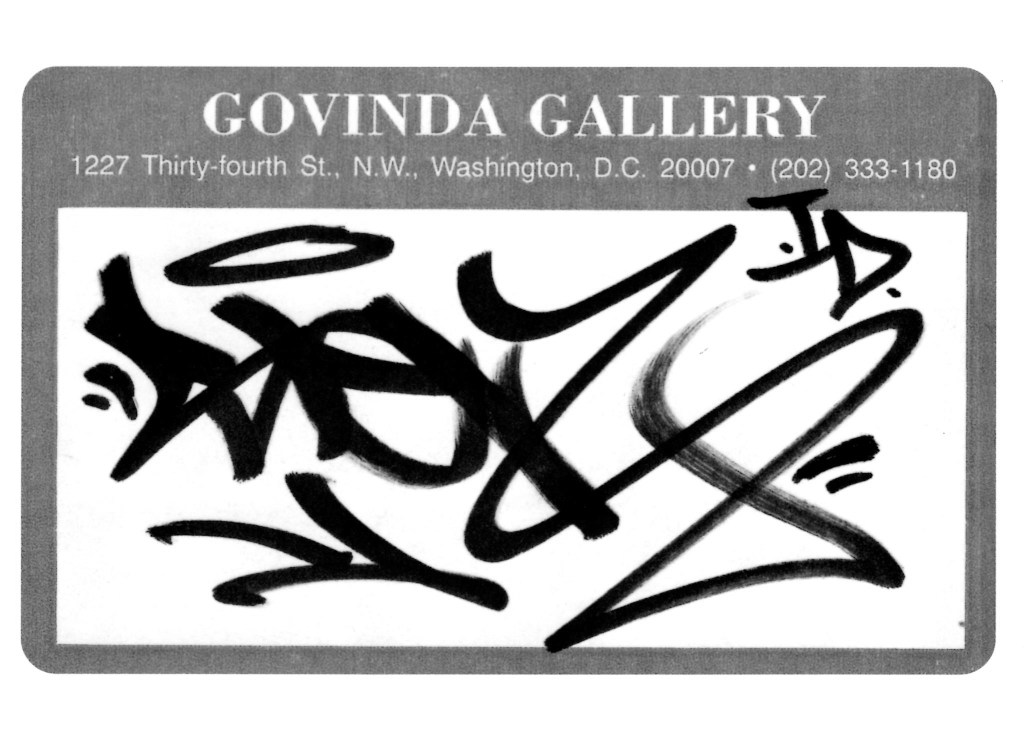 Govinda Gallery hosted the first graffiti exhibition in a Washington DC art gallery during the winter of 2001. The gallery looked fantastic with the work of 5 graffiti artists on the walls, including Tale, who curated the exhibition with Govinda, as well as work by Jonny Real, Sest, Siek, and SMK.
