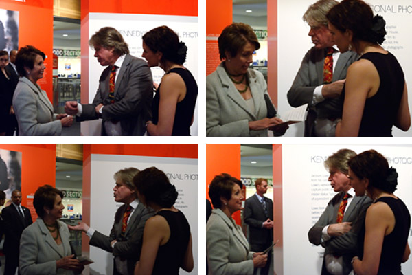 I attended the opening reception for Creating Camelot: The Kennedy Photography of Jacque Lowe at the Newseum April 11th. Some of the VIPs attending included House Minority Leader Nancy Pelosi, CBS president Les Moonves, Washington Post executive editor Ben Bradlee and secret service agent Clint Hill, among others. I had the great pleasure of introducing Victoria Allen to Nancy Pelosi and presented Pelosi with a vintage invitation from Jacques Lowe’s exhibition at Govinda Gallery in 1998, which she enjoyed very much.