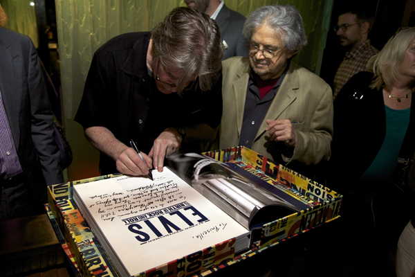 The night before the Beverly Hills launch Wertheimer and Elvis and the Birth of Rock and Roll editor Chris Murray gave a presentation at the Grammy Museum’s Ahmet Ertegun Auditorium about Wertheimer’s new book. Grammy Museum director Bob Santelli moderated the talk. Santelli contributed an essay to Elvis and the Birth Rock and Roll. The Grammy Museum launched Elvis at 21: Photographs by Alfred Wertheimer in January of 2010, the Smithsonian Institution Traveling Exhibitions Service’s tour of Wertheimer’s photographs that was co-organized by Govinda Gallery.