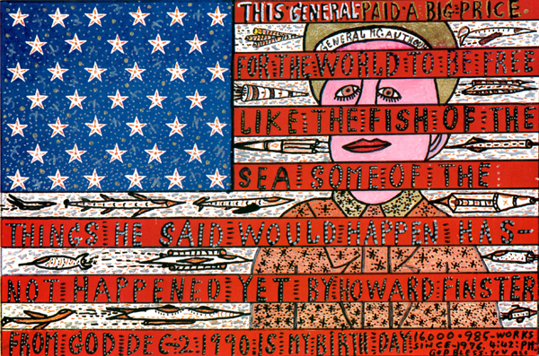 Govinda Gallery published a catalogue of Howard Finster’s American Flag paintings for the Govinda exhibition in 1992. Govinda also commissioned two limited edition signed silk screen prints of Finster’s Flag paintings, More Than A Piece of Cloth and Oh Say Can You See. A number of catalogues and limited edition silkscreen prints are available through Govinda Gallery.