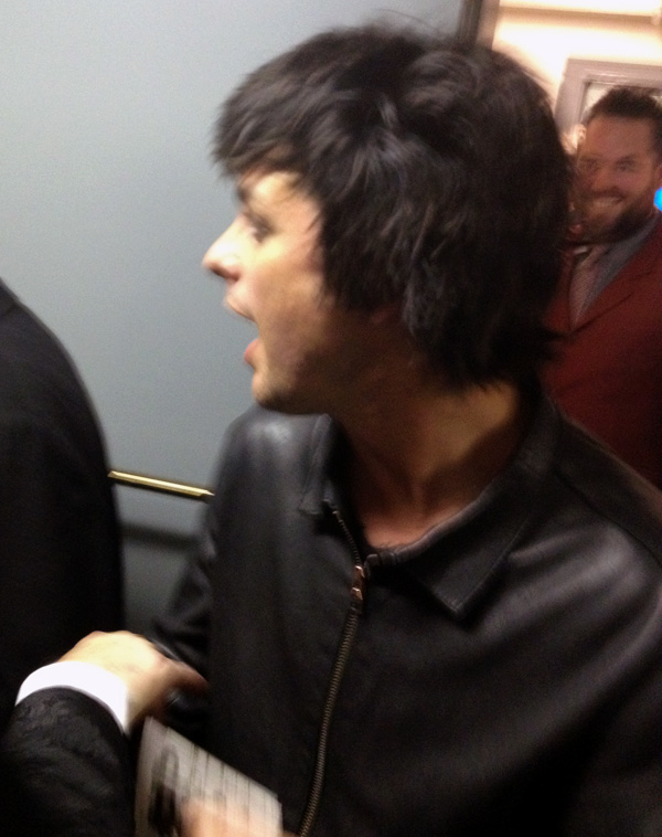 Billie Joe Armstrong pumped up after coming offstage at the Rock & Roll Hall of Fame induction ceremony. © Carlotta Hester, 2012.
