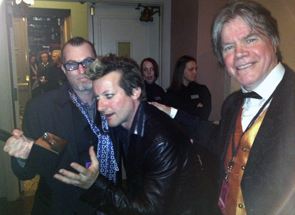 Tré Cool reaching for Donovan’s Hall of Fame award backstage at the Public Hall in Cleveland. © Carlotta Hester, 2012.