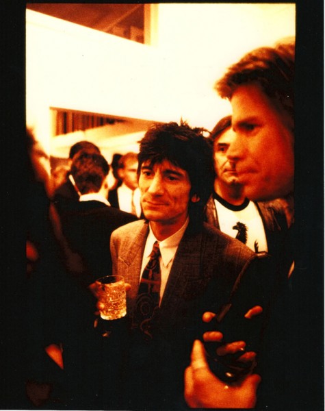 We love Woody here at Govinda Gallery. He is a terrific visual artist. It was my great pleasure to present his first ever exhibition in the United States, Ron Wood: Decades, Dec. 5th, 1987 – Jan. 2nd, 1988. It was also a launch for his first book, Ron Wood: The Works. Woody came to Govinda Gallery with his trusted sidekick, Chuch Magee, for two days, for the opening night of the exhibition and a book signing the next day. It was wild, exhilarating, and great fun. The exhibition was a huge success and appreciated by everyone. Woody was in great form and spent a lot of time in The Back Room at Govinda Gallery.