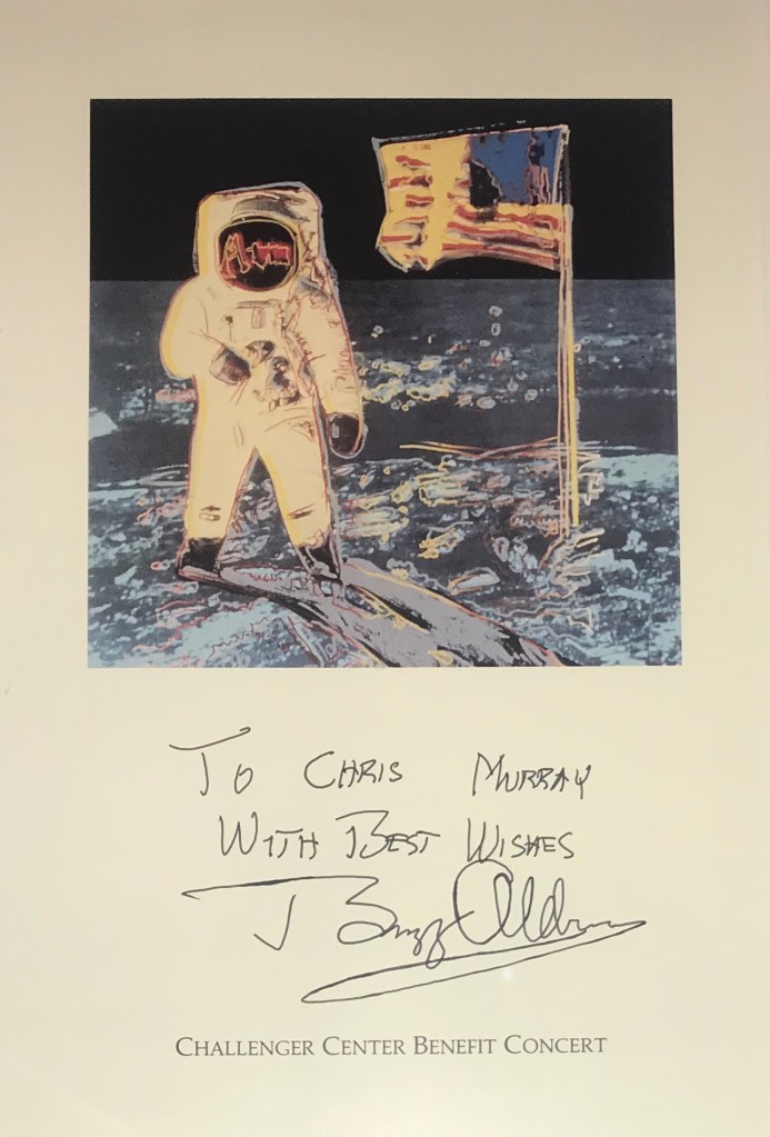 Cover of the Program for the Challenger Center Benefit Concert, inscribed to Chris Murray by Buzz Aldrin. From Govinda Gallery Archive.