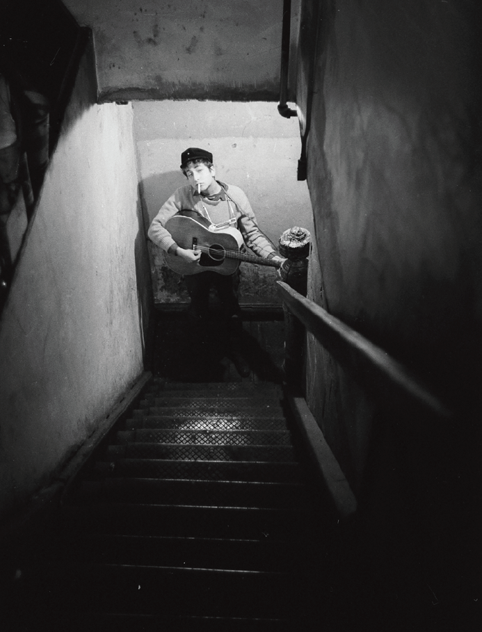 About to go onstage, Gerde’s Folk City, Greenwich Village. 1961. Photo by Ted Russell.