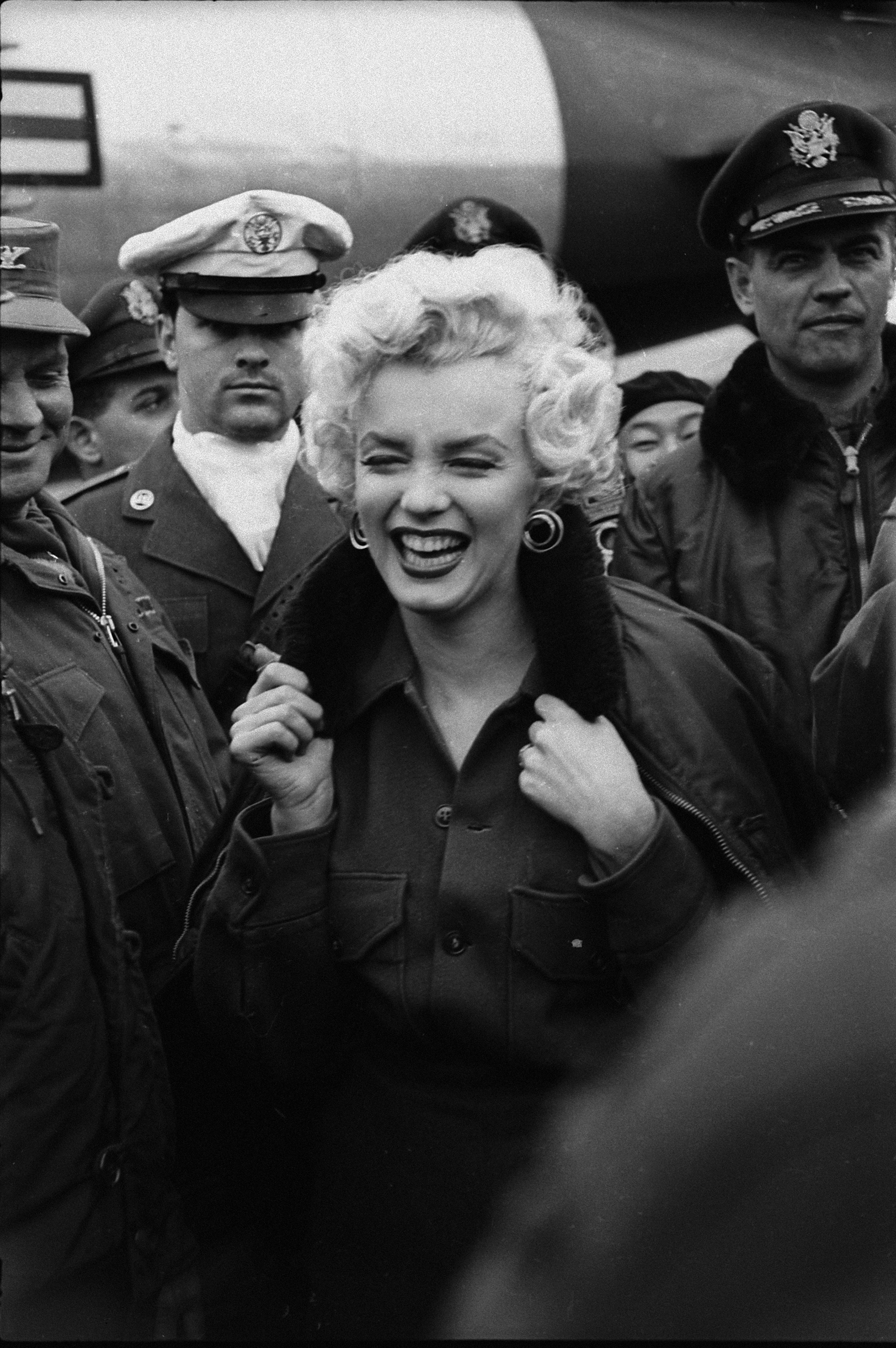 This photo of Marilyn Monroe was taken by Ted Russell in Seoul, Korea in 1954 when Monroe arrived at the Yongsan United States Army Garrison to entertain the troops.