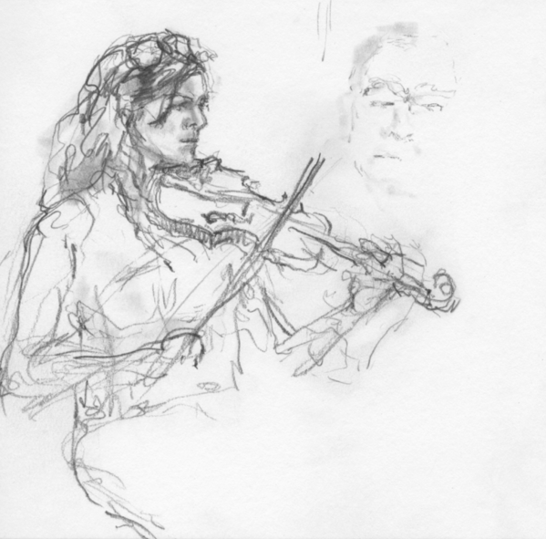 Hester’s drawings are created directly from life while listening to the music in every festival setting: street sessions, theatres, dance classes, pub sessions, masterclasses, outdoor concerts, cross-border gatherings, and more.