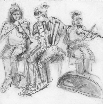 There was a brilliant book launch in Ireland last month for The Pure Drop, Carlotta Hester’s book of drawings of traditional Irish musicians, singers, and dancers, and featuring a foreword by Alice McDermott. It took place on a beautiful sunny Sunday in Cavan town’s Market Square, with over a dozen musical artists performing. It was organized by musician, teacher, archivist, and M.C. Martin Donohoe, and was hosted by Cavan Arts and County Cavan’s NYAH Society of the Musicians of Ireland. Covid-19 protocols were observed.