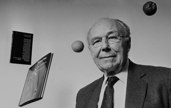 At the time, Govinda Gallery was becoming a familiar haunt for me, then the hotspot in Georgetown, and for decades to come. Earlier that year, I had an assignment there to photograph Dr. Harold Edgerton, who at 82 was a bundle of energy and a joy to hang out with. If you don’t know who he is, you probably have seen his image of a splashing drop of milk caught in mid-air frozen at 50,000 of a second or the one of a speeding bullet frozen in time after exiting an apple. When I explained to Murray that I wanted to photograph Edgerton with objects suspended in motion behind him, Chris told me he could help because he knew how to juggle, and juggle he did, behind Edgerton with an apple, an orange, and two books as I shot away. That ended up being another lead for the Style section.