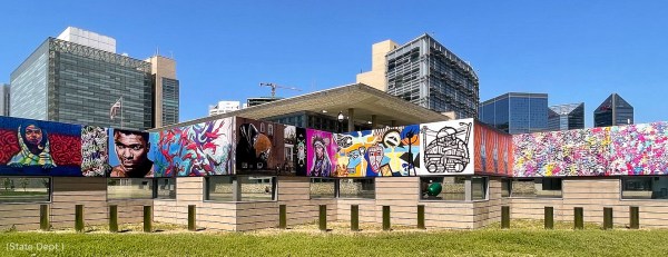 “Art for the People,” a new exhibition on the exterior walls of the U.S. Embassy in China, showcases 23 popular works of American street art, reproduced in partnership with the original artists. Their styles and subjects reflect the diversity of the United States, with pieces highlighting American pioneers such as Muhammad Ali and Ruth Bader Ginsburg, as well as indigenous Native and Hispanic communities.