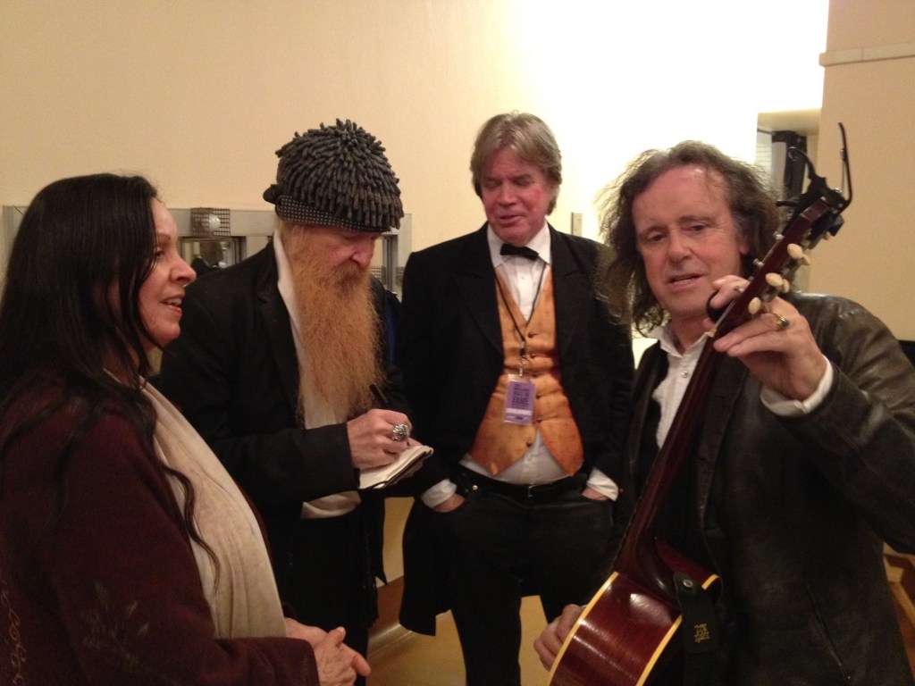 Linda Leitch, Billy Gibbons, Chris Murray with Donovan as he tunes up.