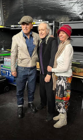 Today is Donovan’s birthday, and I celebrate it with this terrific photograph of Donovan and his wife Linda last weekend with Bruce Springsteen in Dublin. Donovan said, “It was wonderful for Linda and I to visit Bruce yesterday, at his soundcheck in Dublin, and to hear from him, that my music and harmonica playing was an important part of his youth. Bruce, I am also inspired by all you do. Love, Donovan and Linda.”