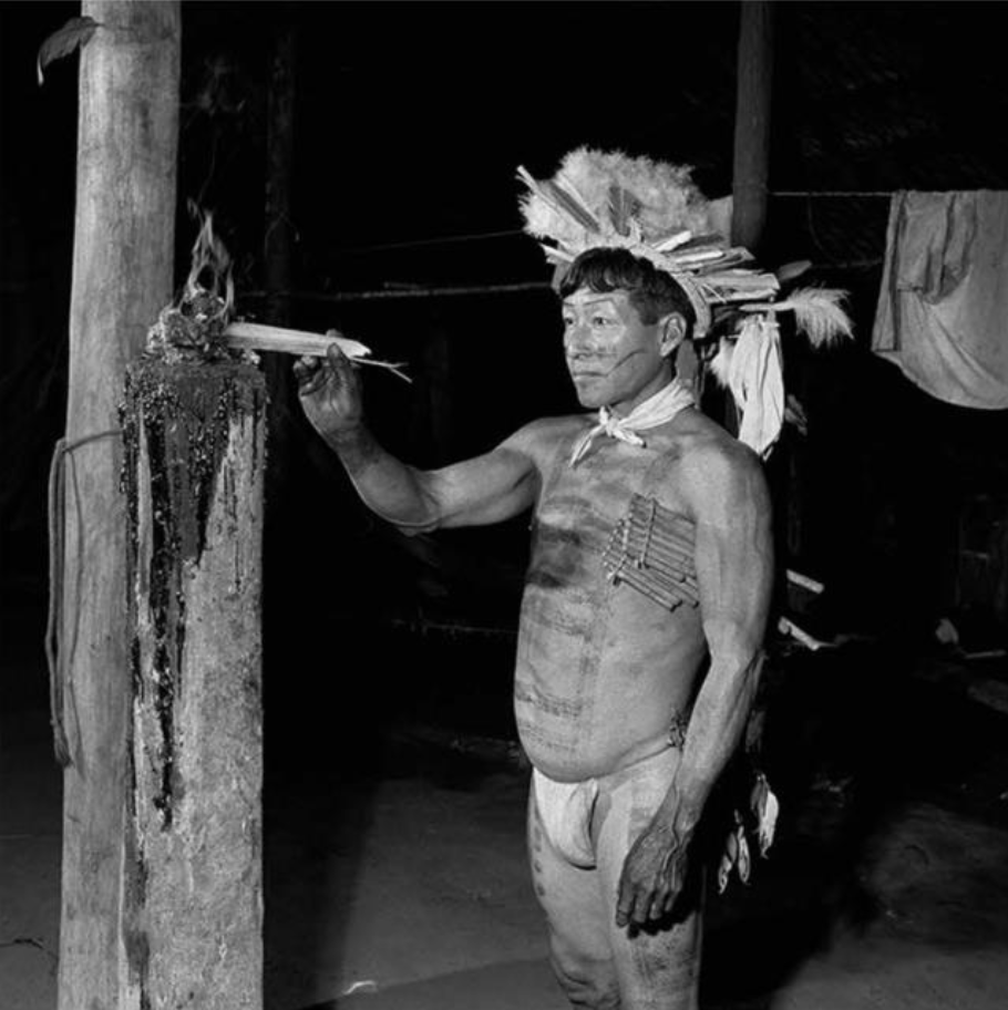 Makuna Shaman Lighting the Torch that Heralds the Beginning of the Yagé (Ayahuasca) Ceremony, Río Popeyacá, 1952. Photo by Richard Evans Schultes.