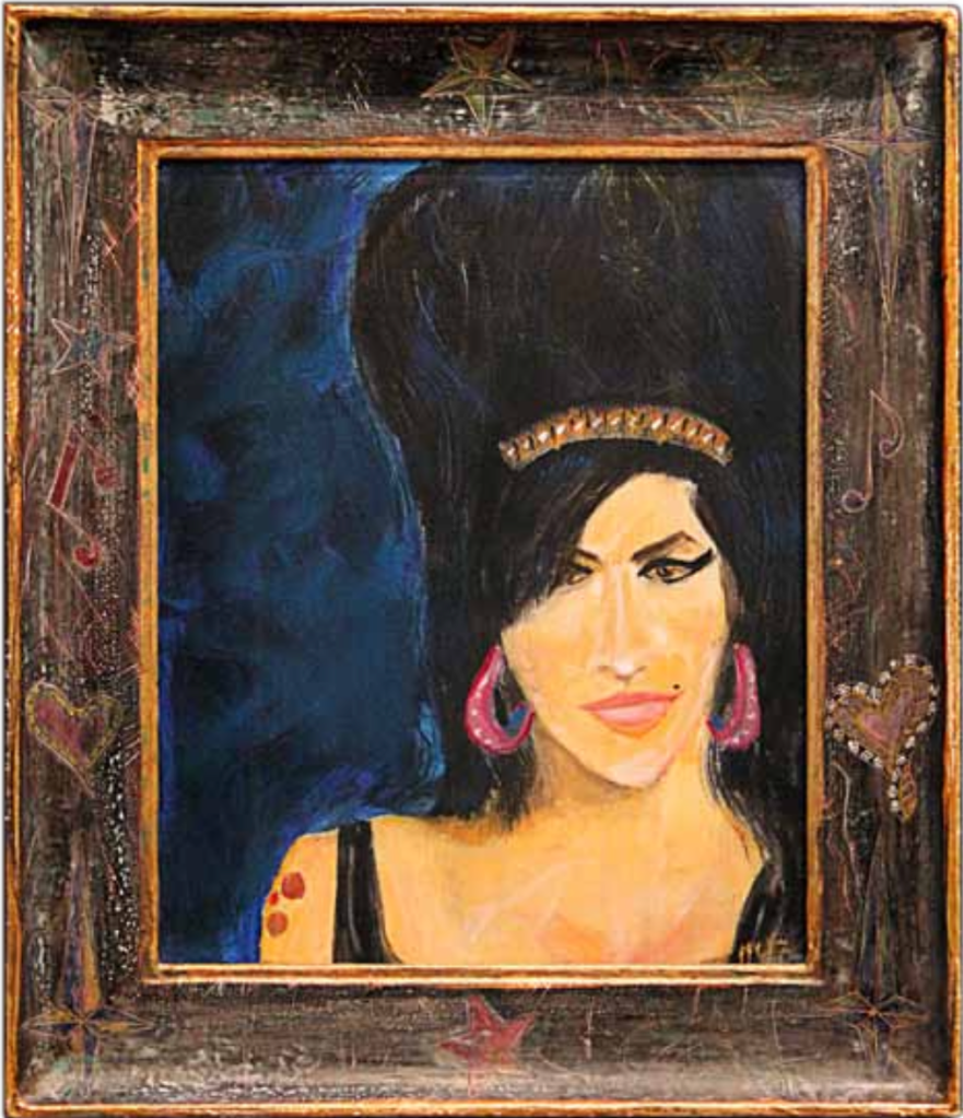 While Egan is well known as a musical artist, many people don’t know that Egan is also a visual artist who has developed a unique style. He earned a degree from Georgetown University in Fine Art in 1970. Since that time, Egan has continued to develop his raw, personal and powerfully enigmatic painting style. Egan’s paintings are a testament to his parallel talents as a visual artist. In this series of paintings, he pays homage to many of the musicians who have inspired him. These portraits, from Ricky Nelson, to Jimi Hendrix, to Amy Winehouse, reveal Egan’s sensitivity as a painter and his intimate connection with his subjects. – Chris Murray
