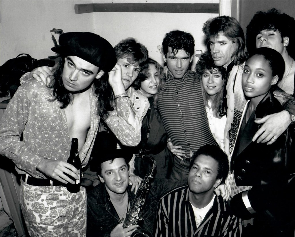 Left to right: Whitney Smith, guitar; Bobby Layton, roadie; Soussan Kabbani, makeup; Jordan Layton, drums; Peggi Redding, dance and vocals; Chris Murray, guitar and vocals; Aiko Von Varga, dance and vocals; Andy Rappaport, guitar. Below, left to right: Jim Sivard, saxophone; Michael Hall, bass.