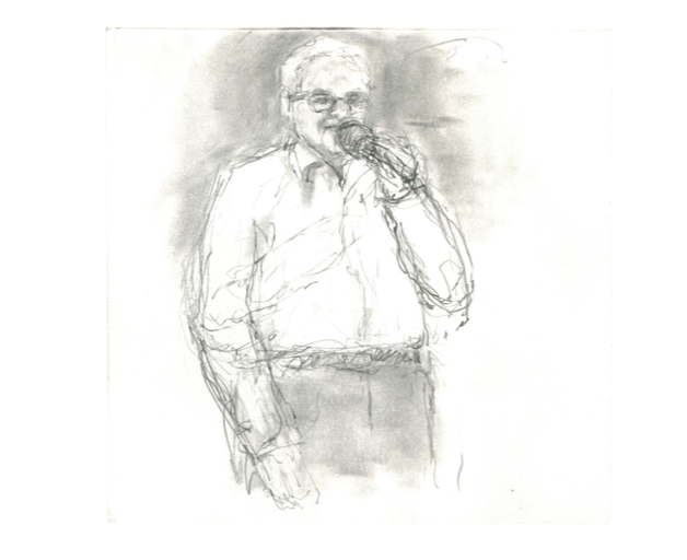 Govinda Gallery artist Carlotta Hester made a live action drawing of Seán Ó Sé at the 2010 All Ireland Music Festival. Hester’s live action drawings of Traditional Irish Musicians were shown in exhibitions in Washington, Dublin, and County Cavan, Ireland, and are published in her book The Pure Drop.